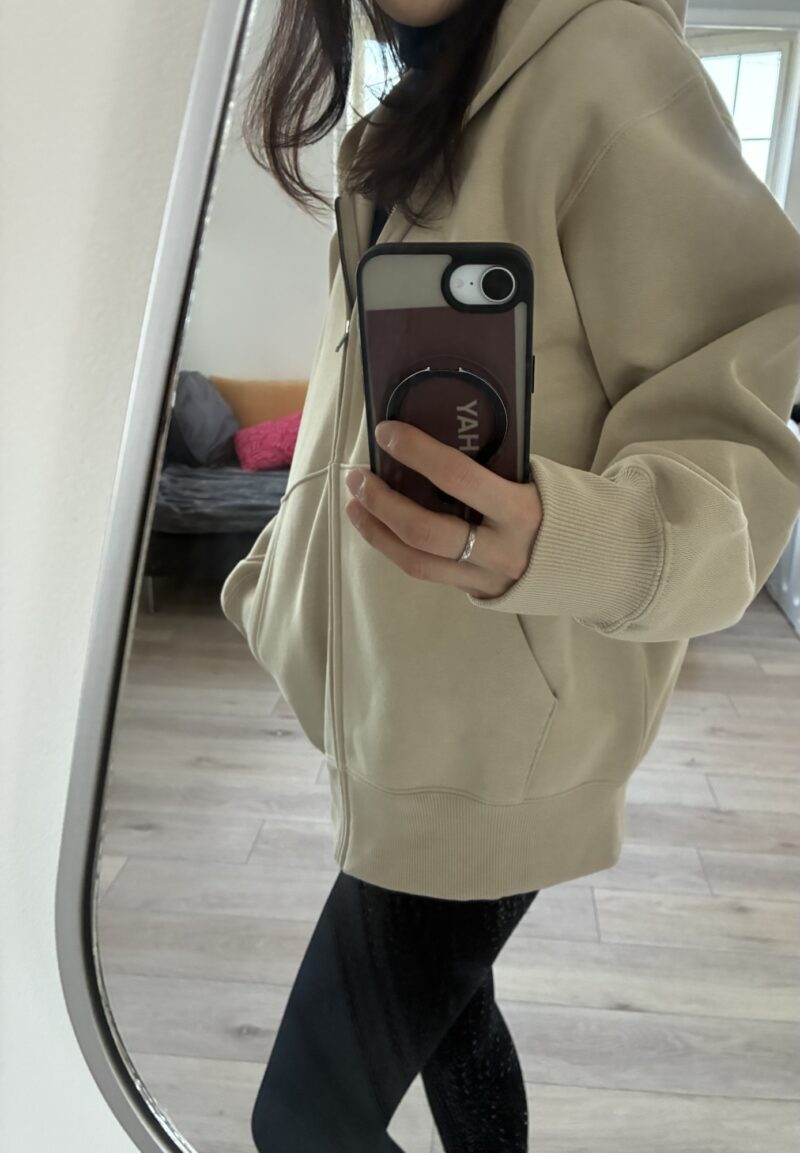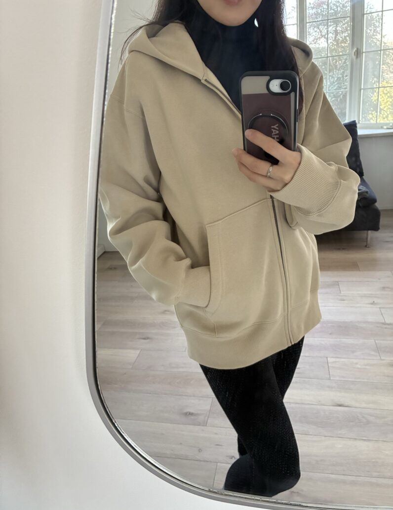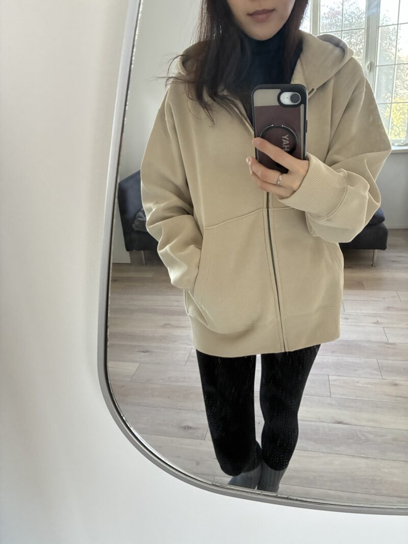 女性らしい上品なベージュで、綺麗めな格好が多い方にもおすすめしたいパーカーです❣️