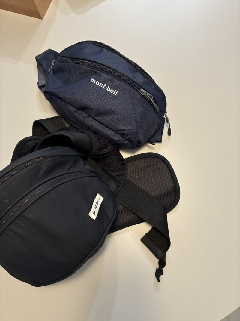 腰の位置に使うmont-bellのウエストポーチと、両方同時に使えます
